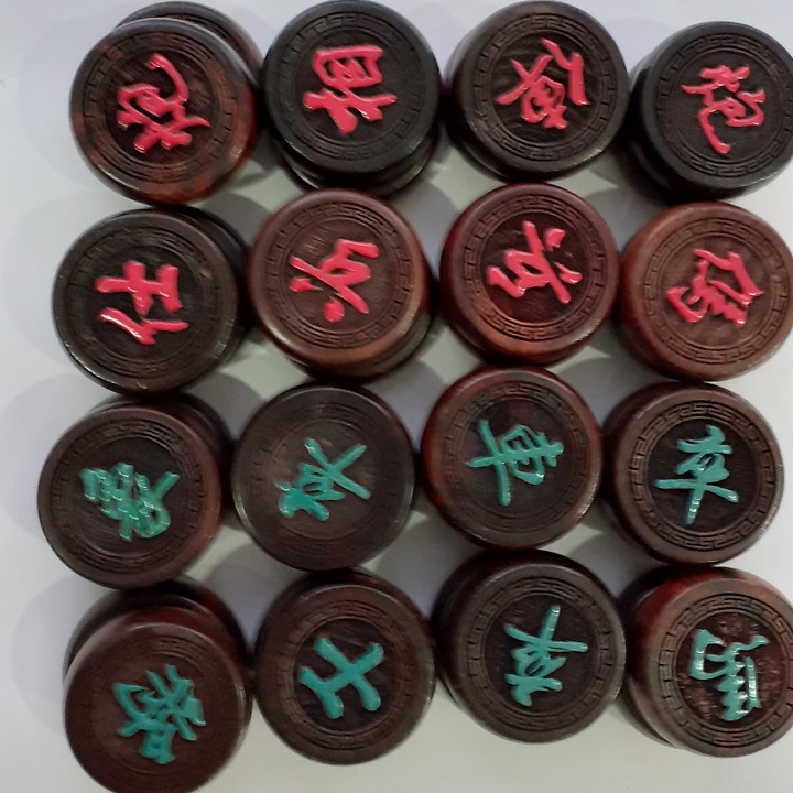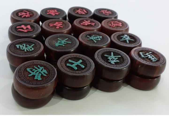 BÀN CỜ TƯỚNG GỖ HƯƠNG GHÉP MẶT VÀ QUÂN CỜ GỖ TRẮC ĐỎ ĐEN GIÀ ĐANH NGUYÊN KHỐI - GIÁ #1000k.