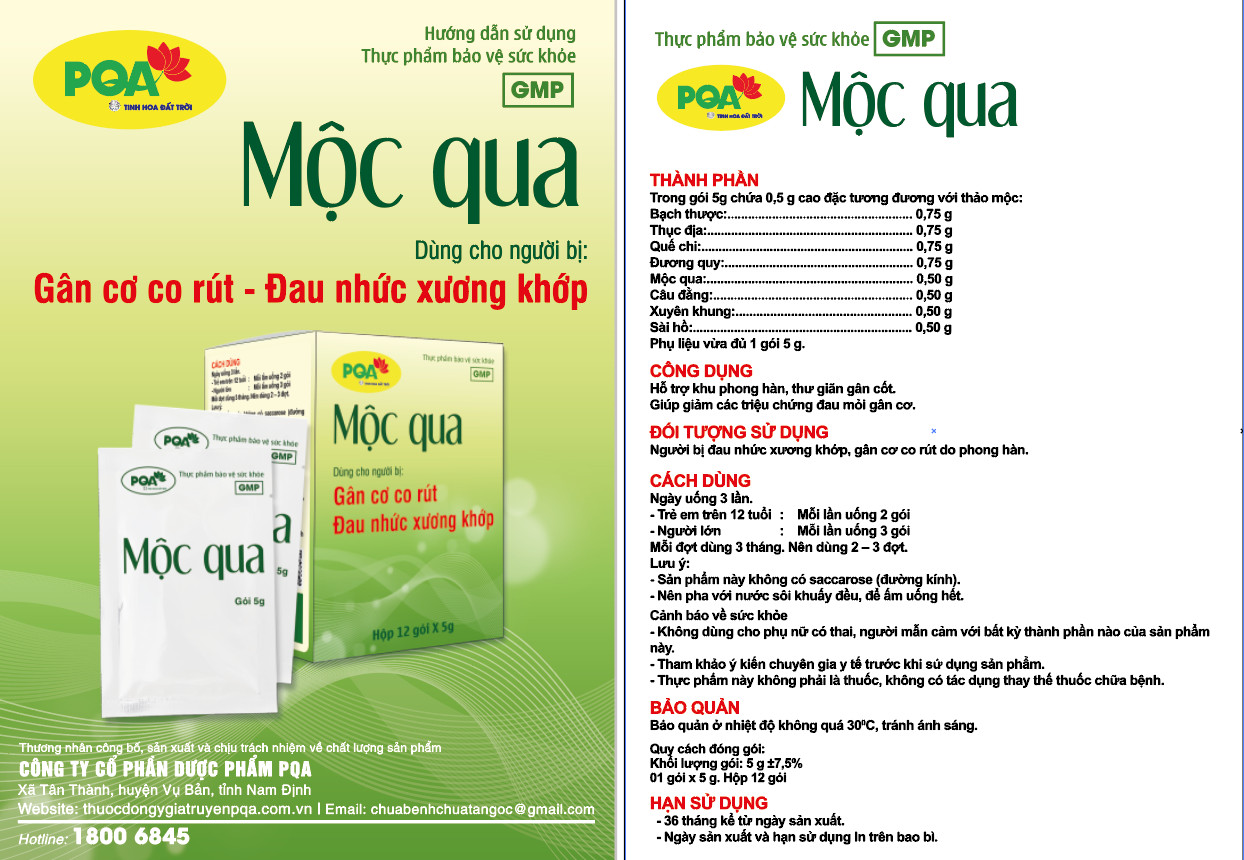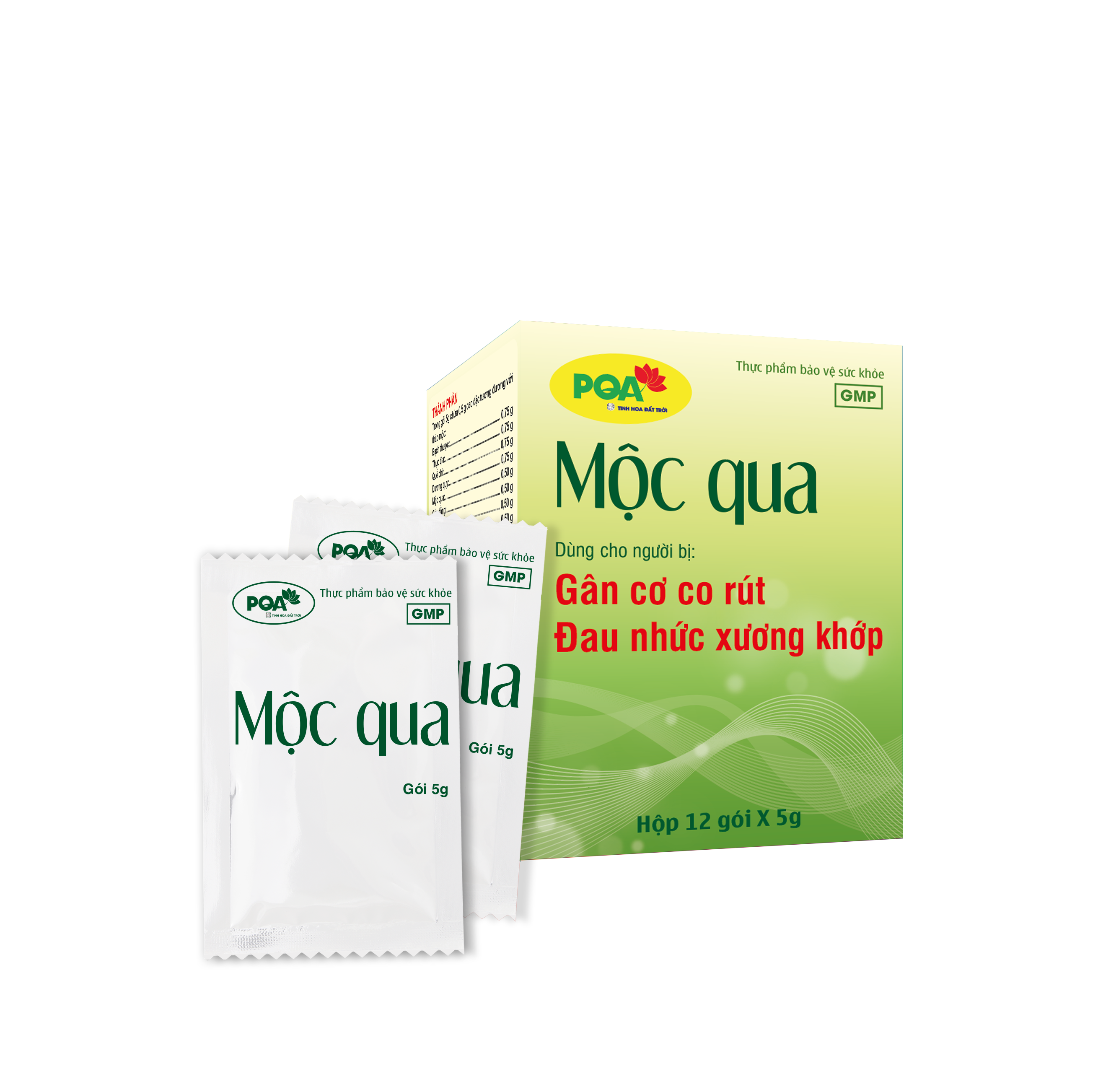 Cốm PQA Mộc Qua là dược phẩm thảo dược hỗ trợ khu phong hàn, thư giãn gân cốt, giúp giảm các triệu chứng đau mỏi gân cơ.
