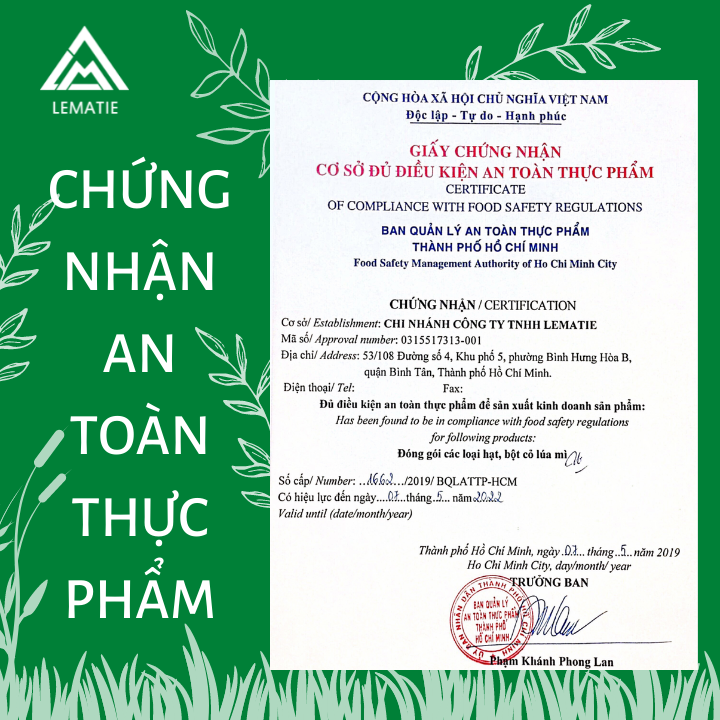 CÔNG TY LEMATIE CAM KẾT: • Sản phẩm bột cỏ lúa mì Lematie chính hãng với giầy tờ đầy đủ và có thể xuất hóa đơn nếu KH có nhu cầu. • Sản phẩm được chụp hình thật, đảm bảo chất lượng