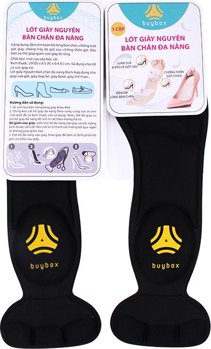 CÔNG DỤNG NỔI BẬT Lót giày nguyên bàn chân đa năng buybox là sự kết hợp giữa lót giày và lót giảm size giày. Lót mũi giày đệm êm ngón chân cũng có công dụng