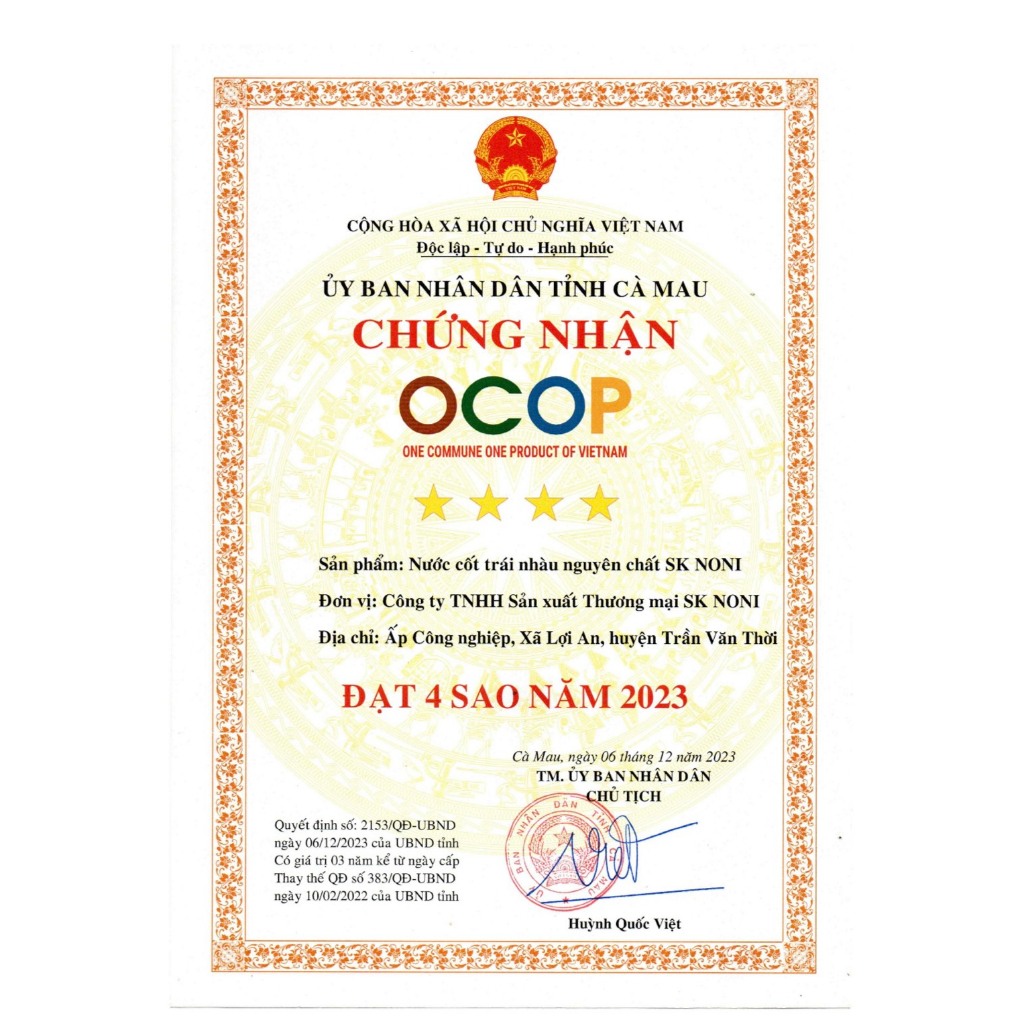 Sản xuất bới: CÔNG TY TNHH SẢN XUẤT THƯƠNG MẠI SK NONI- Huyện Trần Văn Thời, Tỉnh Cà Mau