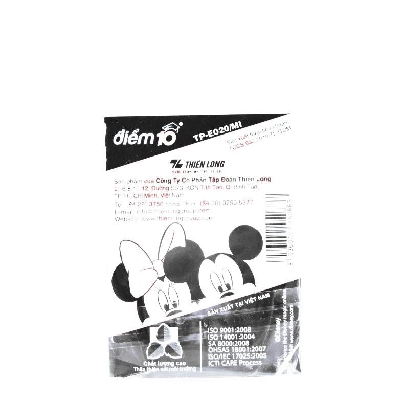 Gôm Điểm 10 TP-E020/MI được làm từ chất liệu cao cấp, đáp ứng các chỉ tiêu an toàn cho phép, không có mùi khó chịu mang đến sự an tâm cho người sử dụng. Gôm siêu mềm và siêu dẻo, không bị cứng khi sử dụng trong thời gian dài. TÍNH NĂNG SẢN PHẨM