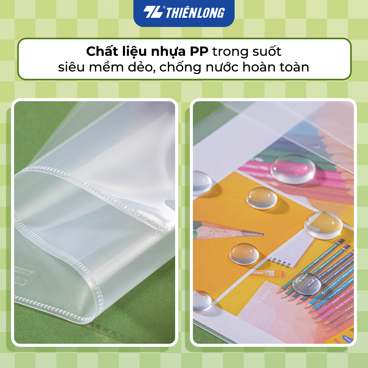 Bìa lá Plus được làm bằng chất liệu PP đặc biệt nên có khả năng chịu được va đập cao Kèm theo đó sản phẩm có bề mặt bóng, độ trong tạo độ thẩm mỹ