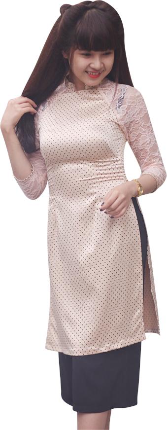 ✨Combo 2 Áo Dài Lụa Chấm Bi FATRALY - Nude + Ví Cầm Tay