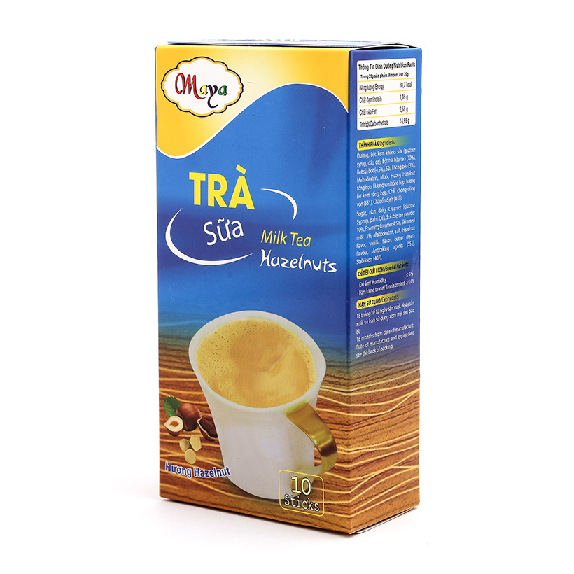 - Trà Sữa Maya Hương Hazelnut Cocoa Indochine (Hộp 10 Sticks) được làm từ những lá trà tươi thiên nhiên qua quá trình chế biến kỹ lưỡng, cho bạn tách trà sữa hương vị hạt