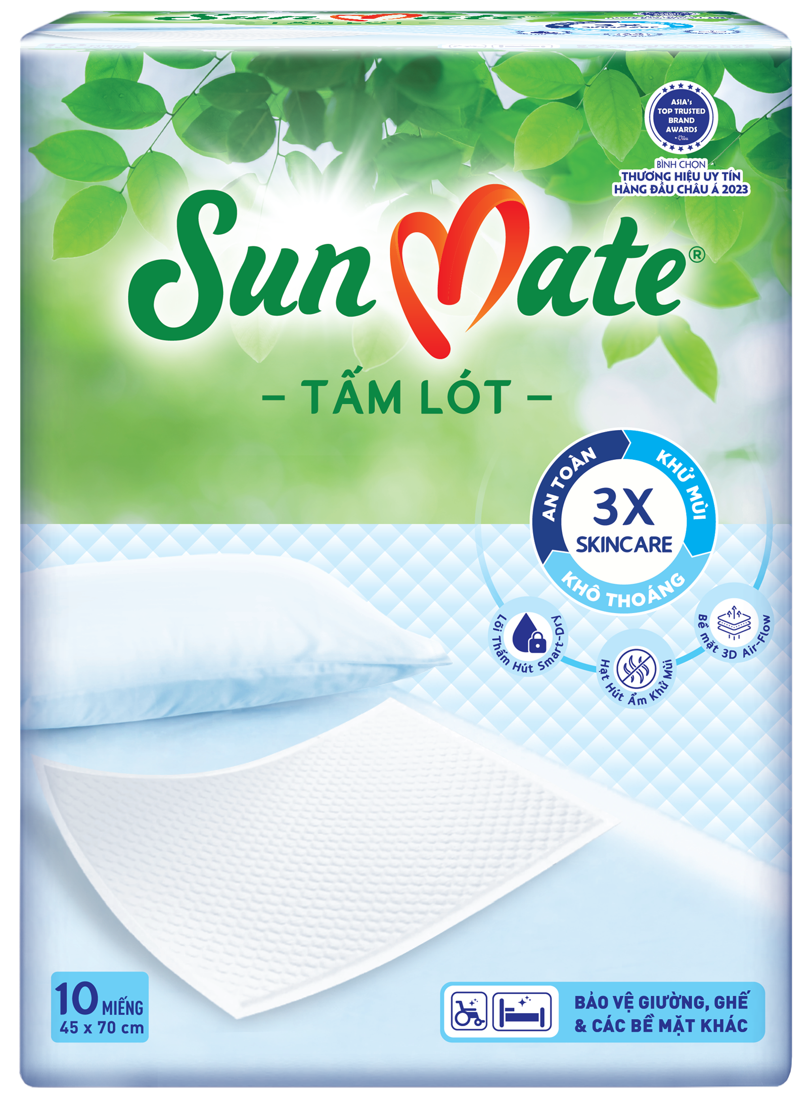 Tấm lót SunMate được dùng chăm sóc vệ sinh cho bệnh nhân sau mổ, bệnh nhân nằm lâu trên giường bệnh, phụ nữ sau sinh, người sử dụng tã cần hỗ trợ thêm, bảo vệ chống tràn và giữ vệ sinh giường, ghế, xe lăn….