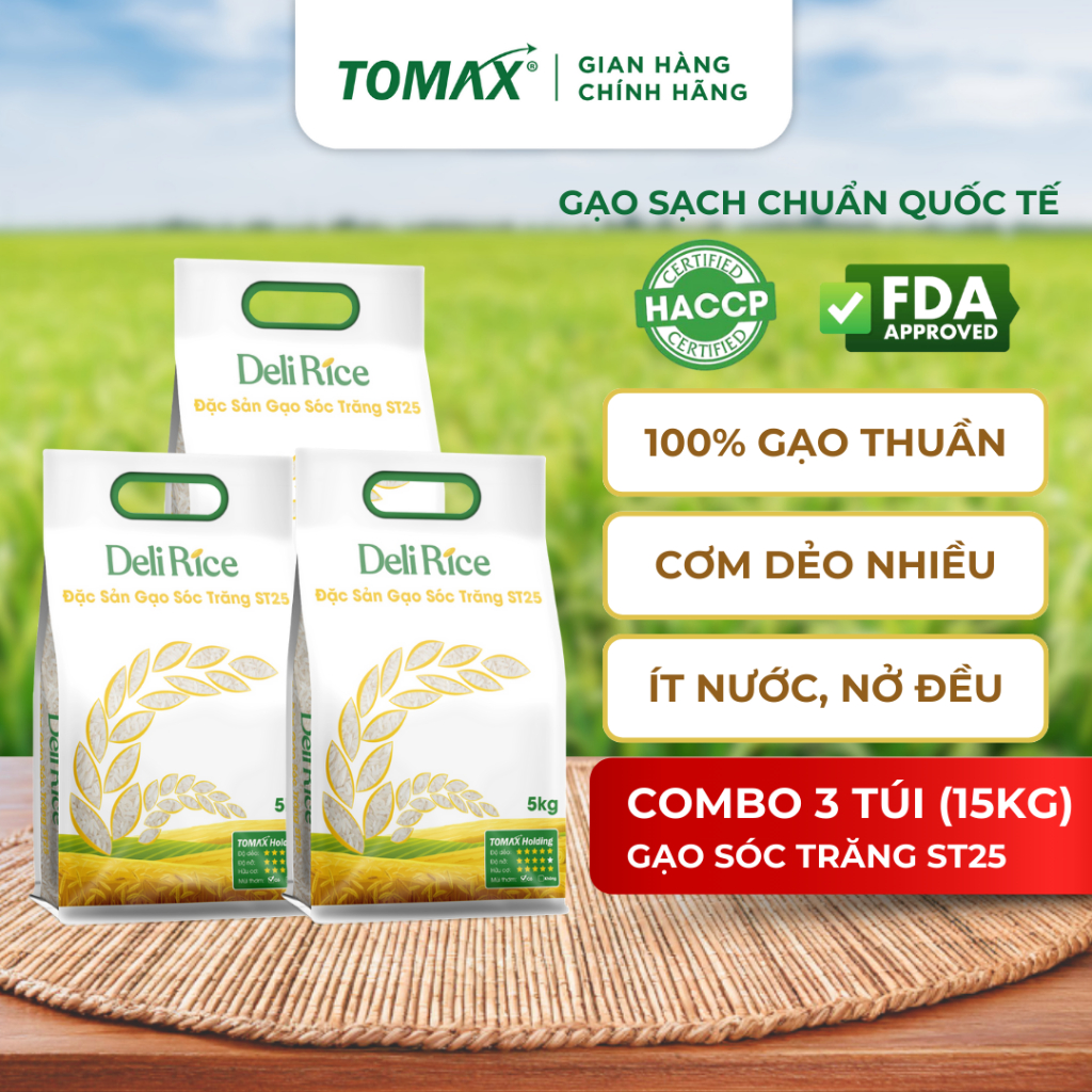 ✨Combo 3 túi 5kg gạo ST25 Tomax thượng hạng, dẻo thơm