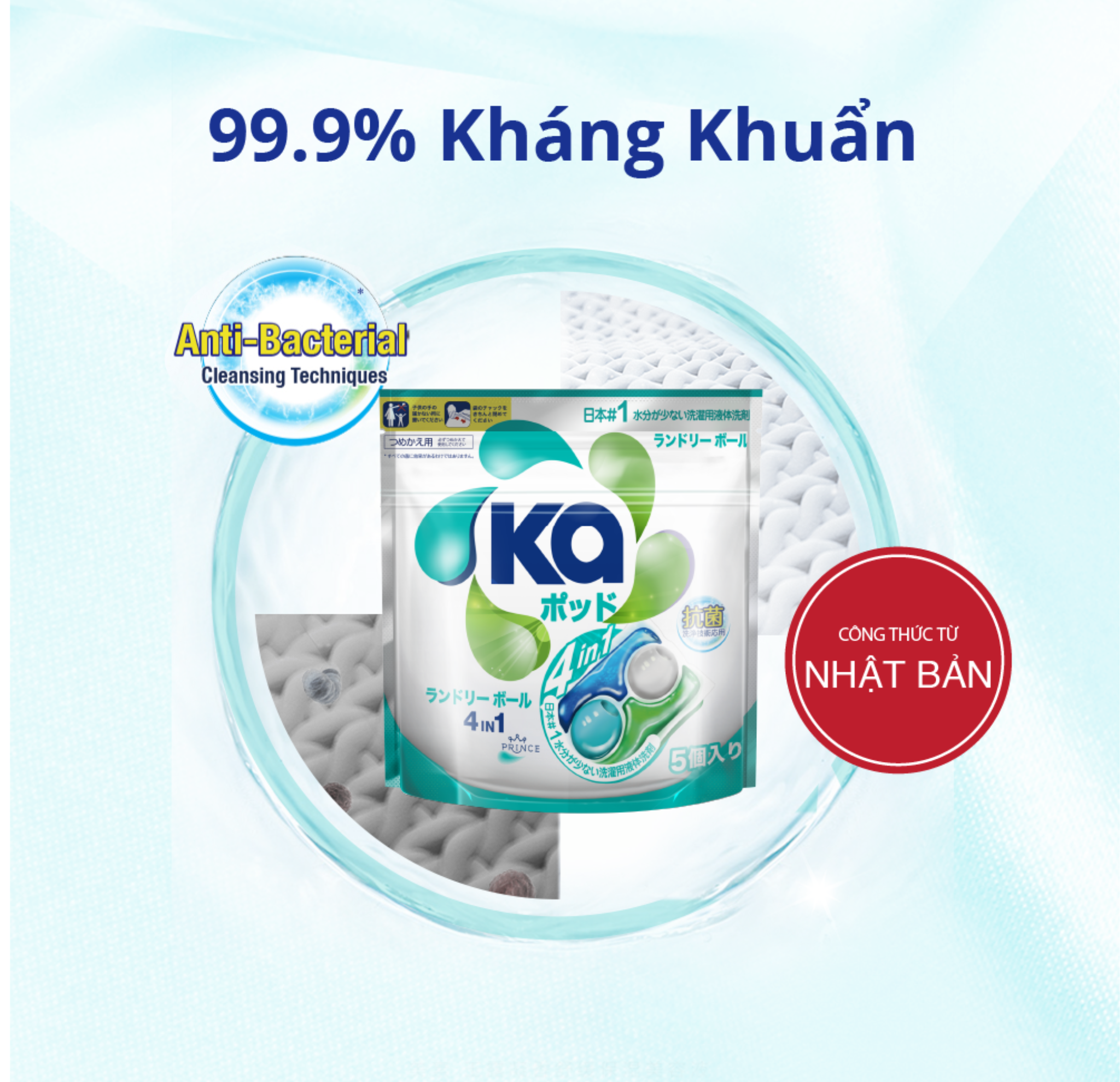 Không còn tình trạng rơi đổ lộn xộn và phải đong đếm bột giặt, việc giặt giũ sẽ tiện lợi hơn với Viên giặt đa năng Ka 4 trong 1.