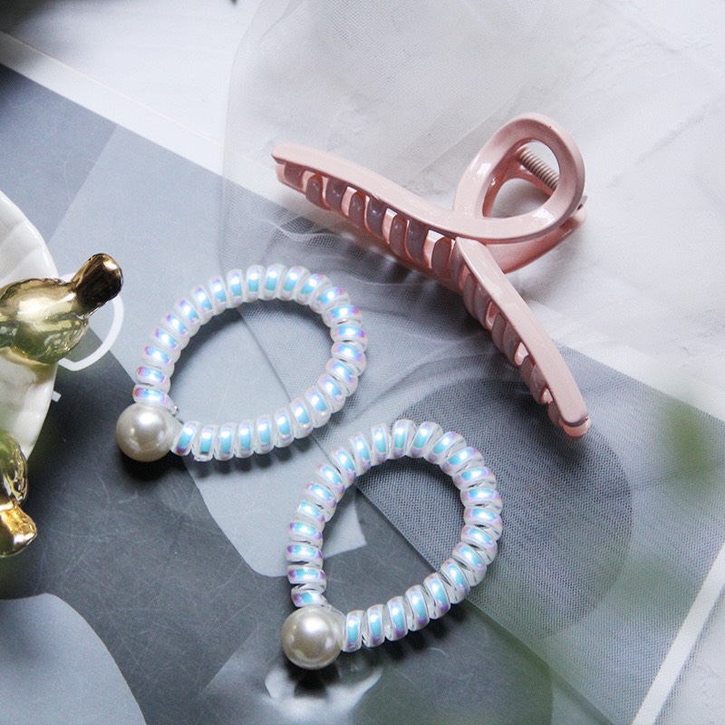 Kẹp càng cua, dây buộc tóc đính ngọc trai là món phụ kiện tóc rất được yêu thích trong một năm đầy biến động vừa qua. Khi học tập và làm việc đều thông qua những cuộc gọi trực tuyến, các cô gái có thói quen sử dụng kẹp càng cua, dây buộc tóc tiện lợi để giữ cho mái tóc luôn gọn gàng, thoải mái.