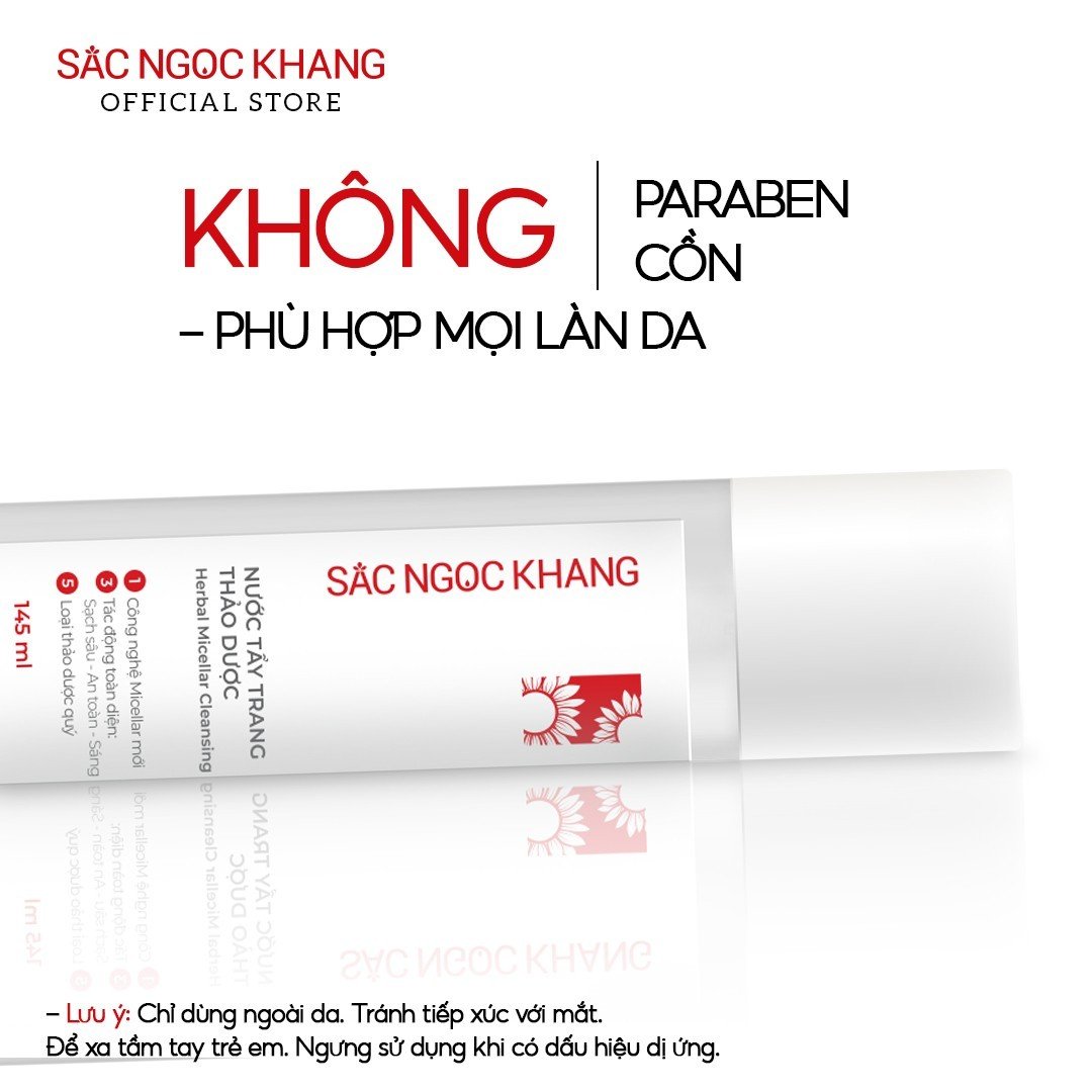 Combo 6 món Nước tấy trang 145ml + Sữa rửa mặt 100g + Nước hoa hồng 145ml + Kem chống nắng 50g + Kem dưỡng da ban đêm 10g + Viên uống Collagen 60 viên [Sắc Ngọc Khang Official] Nước tẩy trang Sắc Ngọc Khang 145ml Micellar Cleasing Water Tẩy sạch sâu – Dưỡng mịn da