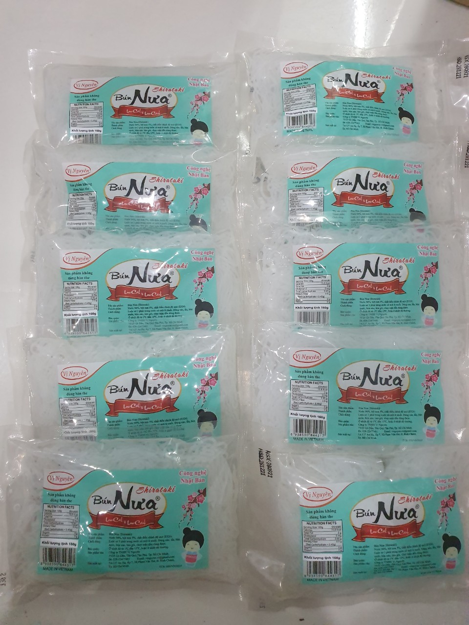 - Bảo quản: Nơi thoáng mát Những thực phẩm được làm từ bột Glucomanna có trong củ nưa, một chất xơ chứ không phải là tinh bột. Sản phẩm được sản xuất theo công nghệ Nhật Bản, không chất bảo quản. ️ THÀNH PHẦN: Bún nưa chiếm 97% chất xơ. Năng lượng 5-30kCal/100g ️ Cách sơ chế: mở hộp đổ bỏ nước muối ngâm, rửa qua bằng nước, thả vào nước sôi cho sôi lại 3-5′. Sau đó có thể chế biến đa dạng như bún miến bình thường như làm bún trộn, bún xào, hoặc bún nước, đặc biệt ăn lẩu với bún Shi cực chuẩn, vì đặc trưng của em nó là càng nấu lâu càng ngấm gia vị, đặc biệt là không hề trương hay nhũn, luôn luôn dai ngon. Bún có hàm lượng chất xơ rất cao, là loại củ có thành phần dinh dưỡng là 0 carb from sugar và gần như 0 kcal. phù hợp với mọi lứa tuổi, mọi chế độ ăn kiêng, kể cả DAS, Lowcarb.