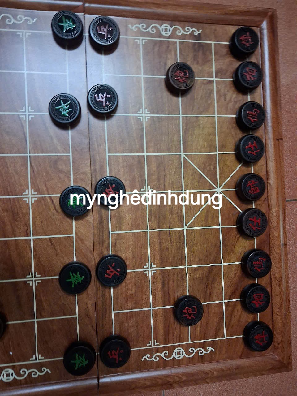 BÀN CỜ TƯỚNG GỖ HƯƠNG GHÉP MẶT VÀ QUÂN CỜ GỖ TRẮC ĐỎ ĐEN GIÀ ĐANH NGUYÊN KHỐI - GIÁ #1000k.