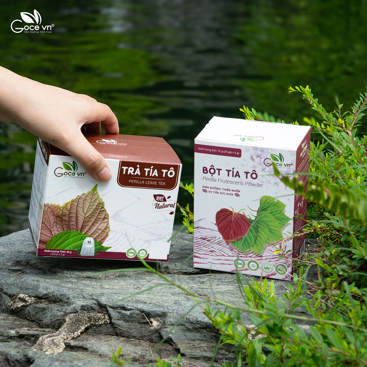 ✨Combo Giải cảm, Giảm ho Goce (1 hộp Trà tía tô 40g, 1 hộp Bột tía tô 72g)