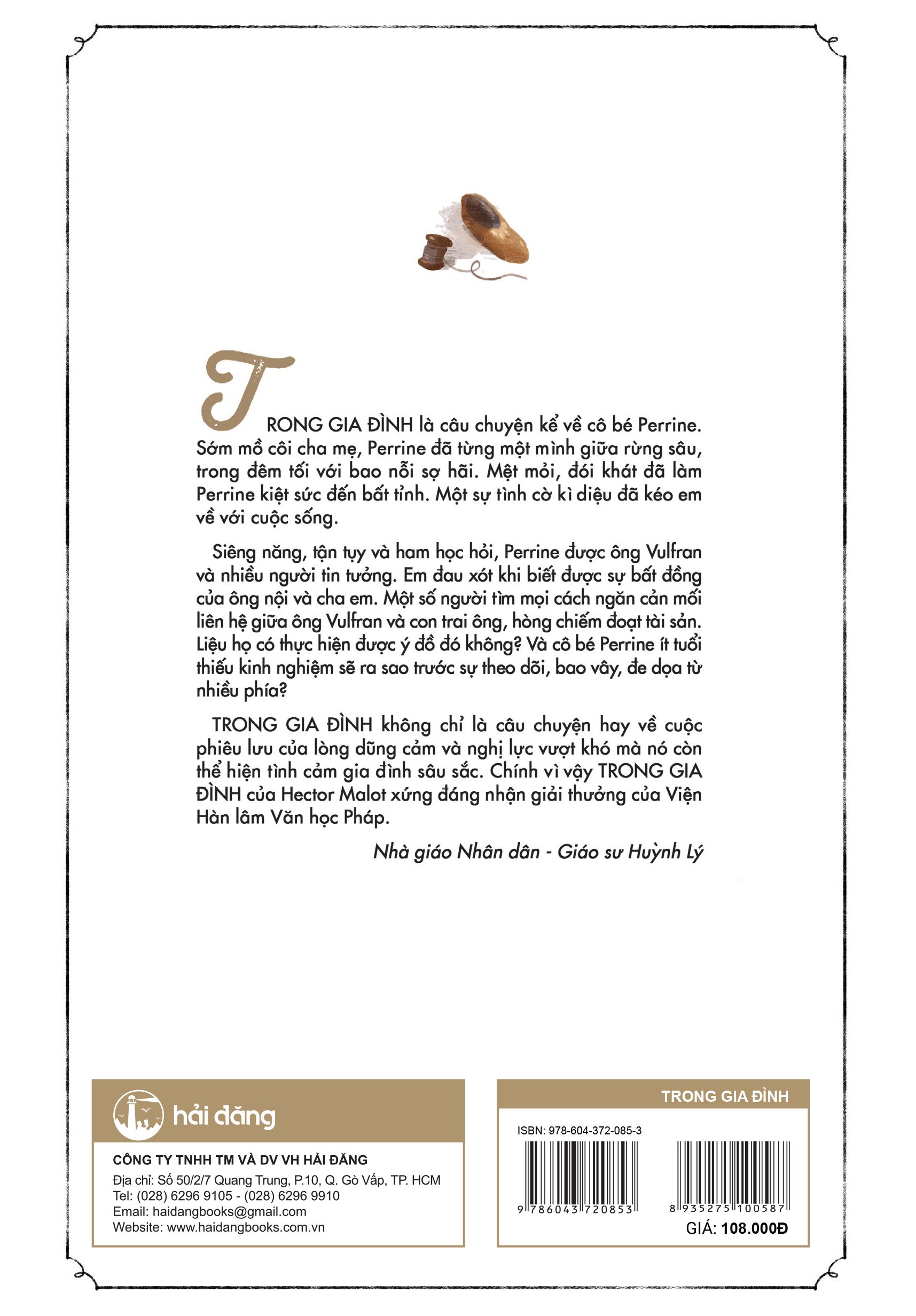 Combo Trong Gia Đình + Không Gia Đình  TRONG GIA ĐÌNH là câu chuyện kể về cô bé Perrine. Sớm mồ côi cha mẹ, Perrine đã từng một mình giữa rừng sâu, trong đêm tối với bao nỗi sợ hãi. Mệt mỏi, đói khát đã làm Perrine kiệt sức đến bất tỉnh. Một sự tình cờ kỳ diệu đã kéo em về với cuộc sống. Siêng năng, tận tụy và ham học hỏi, Perrine được ông Vulfran và nhiều người tin tưởng. Em đau xót khi biết được sự bất đồng của ông nội và cha em. Một số người tìm mọi cách ngăn cản mối liên hệ giữa ông Vulfran và con trai ông, hòng chiếm đoạt tài sản. Liệu họ có thực hiện được ý đồ đó không? Và cô bé Perrine ít tuổi thiếu kinh nghiệm sẽ ra sao trước sự theo dõi, bao vây, đe dọa từ nhiều phía? TRONG GIA ĐÌNH không chỉ là câu chuyện hay về cuộc phiêu lưu của lòng dũng cảm và nghị lực vượt khó mà nó còn thể hiện tình cảm gia đình sâu sắc. Chính vì vậy TRONG GIA ĐÌNH của Hector Malot xứng đáng nhận giải thưởng của Viện Hàn lâm Văn học Pháp. KHÔNG GIA ĐÌNH kể về cuộc đời của cậu bé Rémi. Từ nhỏ, Rémi đã bị bắt cóc, rồi bị bố nuôi bán cho một đoàn xiếc thú. Em đã theo đoàn xiếc ấy đi lưu lạc khắp nước Pháp. Rémi đã lớn lên trong gian khổ và lao động để sống. Lúc đầu em được sự dạy bảo của cụ Vitalis, về sau thì tự lập. Không những lo cho mình, em còn lo việc biểu diễn và kiếm sống cho cả một gánh hát rong… Nhưng dù ở đâu, trong cảnh ngộ nào, em vẫn noi theo nếp rèn dạy của cụ Vitalis giữ phẩm chất làm người. Đó là lòng yêu lao động, tự trọng, ngay thẳng, biết nhớ ơn nghĩa và luôn luôn muốn làm người có ích. KHÔNG GIA ĐÌNH luôn cuốn hút, hấp dẫn người đọc vì đây chính là những cuộc phiêu lưu của lòng dung cảm và tình cảm gia đình. KHÔNG GIA ĐÌNH là quyển sách hay nhất về giáo dục, xứng đáng nhận giả thưởng của Viện Hàn lâm Văn học Pháp.