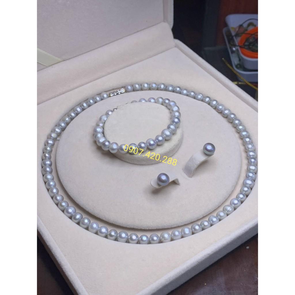*** Bộ Ngọc Trai nuôi thiên nhiên gồm vòng cổ 40cm vòng tay 16cm-18cm khuyên tai kích thước bộ từ 8ly - 9ly. ** Hạt trai bóng đẹp bền rất nền nã. Hạt ngọc trai