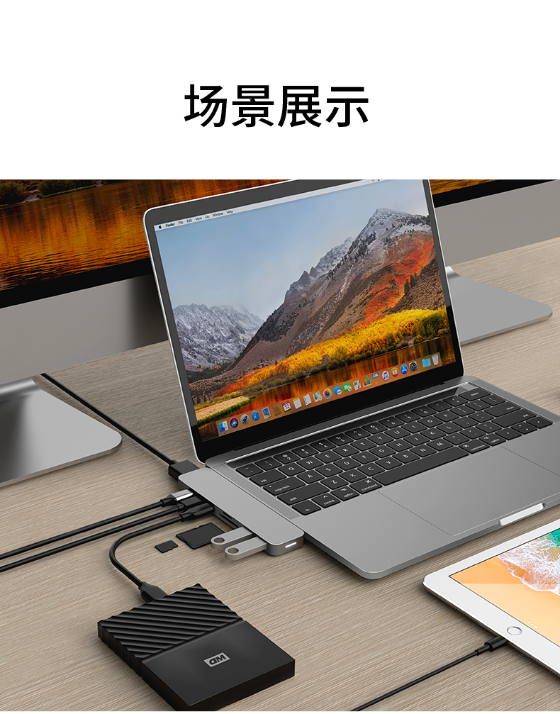 1. Type-C to HDMI+3 ports USB3.0+SD/TF 6-in-1 multi-function docking station/4K30Hz/space gray/ 2. Material: aluminum shell 3. USB specification: USB 3.0, 5Gbps 4. System: Windows/macOS/Linux
