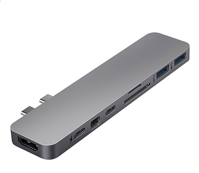 1. Features: Extend more connections from USB Type-c 2. Input: USB Type-C positive 3. Output: 2*usb-c + RJ45 + HDMI 4K60HZ + PD + SD + TF + 2*USB3.0 4. Material: aluminum alloy shell, gold-plated
