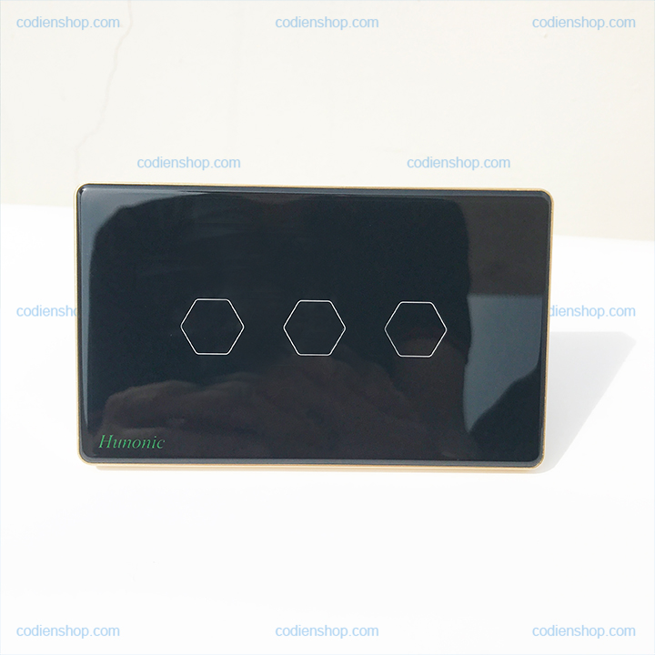 ✨Công tắc CẢM ỨNG THÔNG MINH - Hunonic Luxury - 3 nút màu đen - Công nghệ Bluetooth Mesh