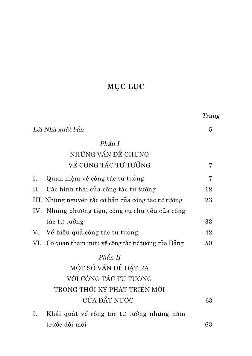 Mua tại TiktokCuốn sách Công tác tư tưởng và những vấn đề đặt ra với công tác tư tưởng trong thời kỳ phát triển mới của đất nước do PGS.TS. Đào Duy Quát biên tập, tập trung hệ thống hóa các vấn đề cốt lõi về công tác tư tưởng. Tác giả phân tích sâu các công thức hiện nay, từ đổi mới tư duy, phương pháp tuyên truyền đến tình hình tư tưởng trong Đảng và xã hội, đồng thời đề xuất giải pháp cố gắng nâng cao hiệu quả đấu tranh lý luận, phát huy vai trò trò chơi của công ty tư tưởng trong phát triển văn hóa, quốc gia, phòng, ninh và đối lập, góp phần bảo vệ chắc chắn tổ quốc trong thời điểm phát triển mới.