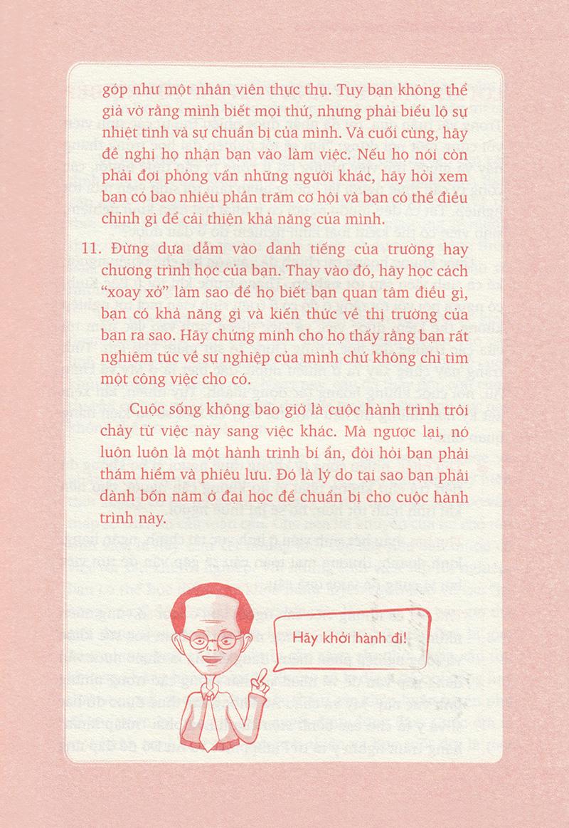 Ở cuốn đầu tiên“Khởi Hành” đã giới thiệu những cách chọn ngành, cách xác định lĩnh vực học tập phù hợp, phương pháp học tập tiến bộ, cách tư duy khoa học và những kỹ năng cần thiết mà sinh viên cần tích lũy trong suốt quá trình học đại học. Và giờ là lúc các bạn bắt đầu thật sự dấn thân vào chuyến hành trình dài nhất cuộc đời, hành trình lập nghiệp. Thế giới thay đổi từng ngày, tìm một chỗ đứng cho bản thân trong xã hội hiện nay không dễ dàng nhưng cũng không phải là điều bất khả. Với tầm nhìn, kinh nghiệm và khát khao giúp đỡ các bạn trẻ trên toàn thế giới tìm thấy hướng đi cho mình, giáo sư John Vu đã nhìn thấy những vấn đề, tìm ra các giải pháp, vàmong muốn chia sẻ chúng với tất cả những ai đang cần.