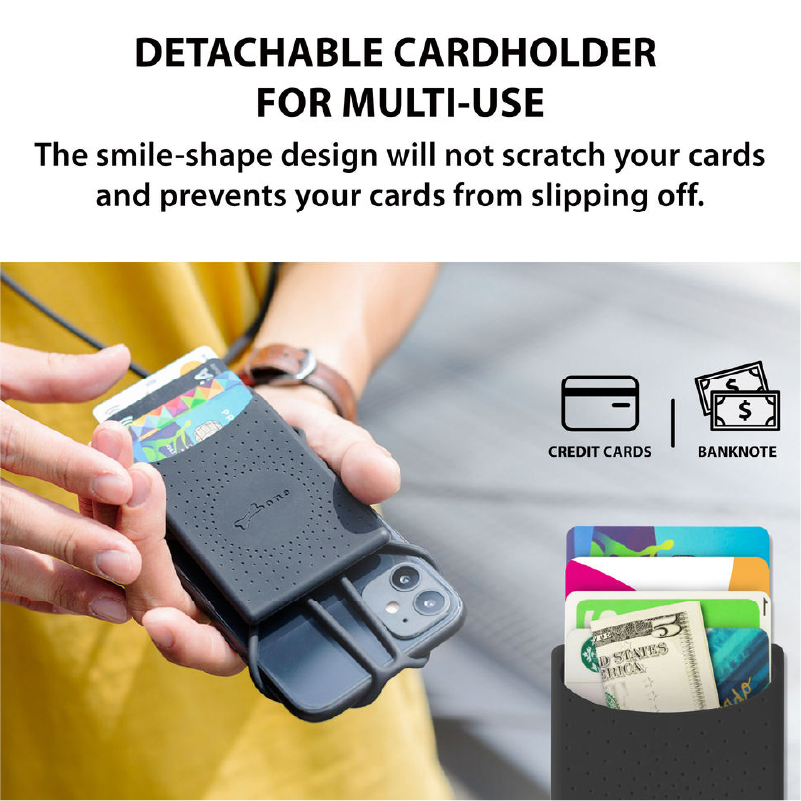 - Ốp lưng chính hãng phù hợp với điện thoại thông minh từ 4-6,7 inch. - Túi đựng thẻ có thể tháo rời để sử dụng nhiều lần. - Thiết kế khóa ẩn dây buộc ở cổ,