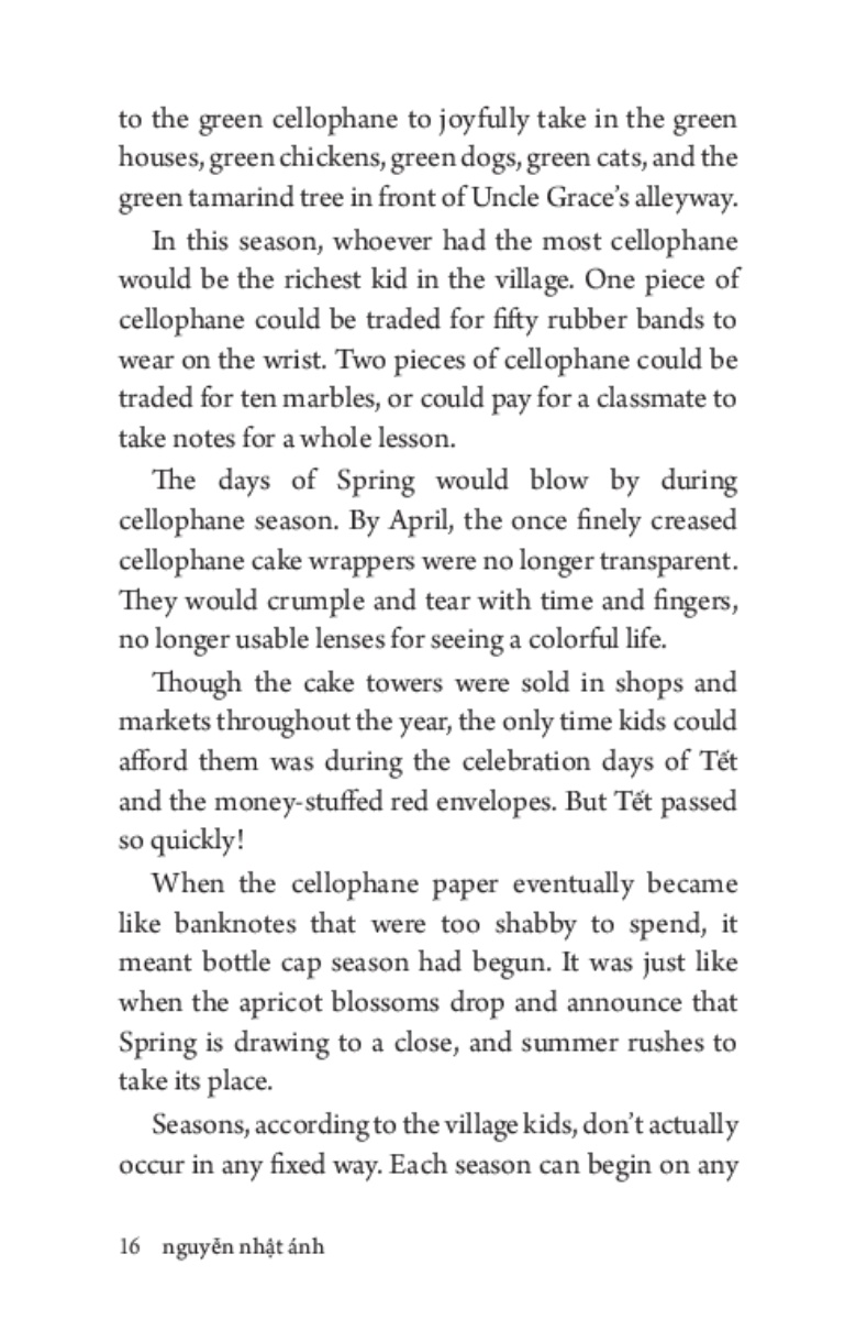 This time I will tell her that I love her very much, such a big love, and the reason why the last time I didn’t dare express my love in a natural way is because I thought I was about to die. I will tell her the story of how the doctors misdiagnosed me, and that is why I didn’t return to the village. In this spot, I will lie to Turtle a bit. I am not yet ready to mention the real reason that kept me in Sài Gòn for three whole years. The story of her origin, I will tell her later so she knows.