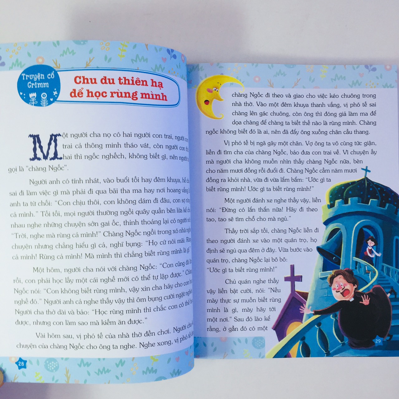 “Truyện cổ Grim” sẽ đưa các bạn nhỏ bước vào một thế giới cổ tích êm đềm và tươi đẹp. Ở thế giới ấy, chúng ta như được phiêu lưu cùng những chàng hoàng tử khôi ngô tuấn tú, những nàng công chúa xinh đẹp, đáng yê Rồi chẳng hay tự bao giờ chúng ta học hỏi sự lương thiện của nàng Bạch Tuyết, biết lấy việc giúp đỡ người khác làm niềm vui như bảy chú lùn, học cách tự bảo vệ mình qua truyện Chó sói và bảy chú dê