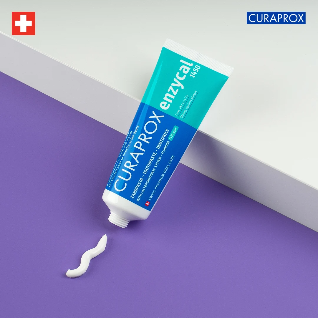 Curaprox Enzycal 1450: Effective, gentle, recommended by dentists.