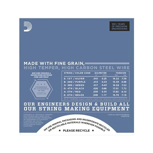 - Gauges: Thép trơn .010, .013, .017, ProSteels Wound .026, .036, .046