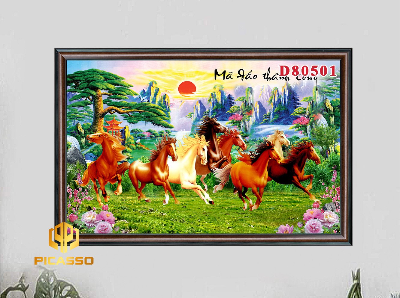 Tranh Kính 3D Mã Đáo Thành Công(Tranh Bát Mã) Đẹp. Tranh Kính Cường Lực Nhật Minh