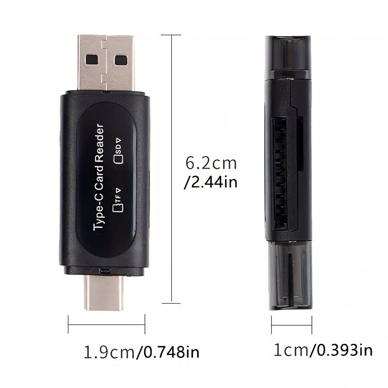 Đầu đọc thẻ SD 4 trong 1: Đầu đọc thẻ này tích hợp cổng USB 2.0 và Type-c tiêu chuẩn, giúp đầu đọc thẻ tương thích với tất cả PC, máy tính xách tay và điện thoại thông minh có cổng Type-c hỗ trợ chức năng OTG.