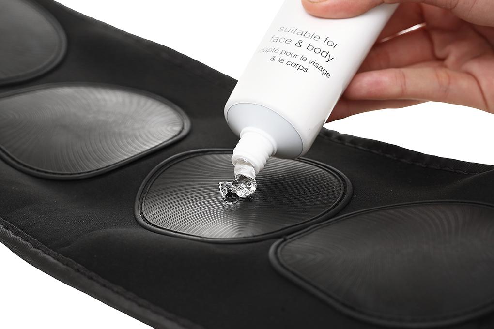 Đặt đai quanh eo của bạn với các miếng đệm trực tiếp trên cơ bụng. Thắt chặt đai để đảm bảo các miếng đệm tiếp xúc tốt với da của bạn.
