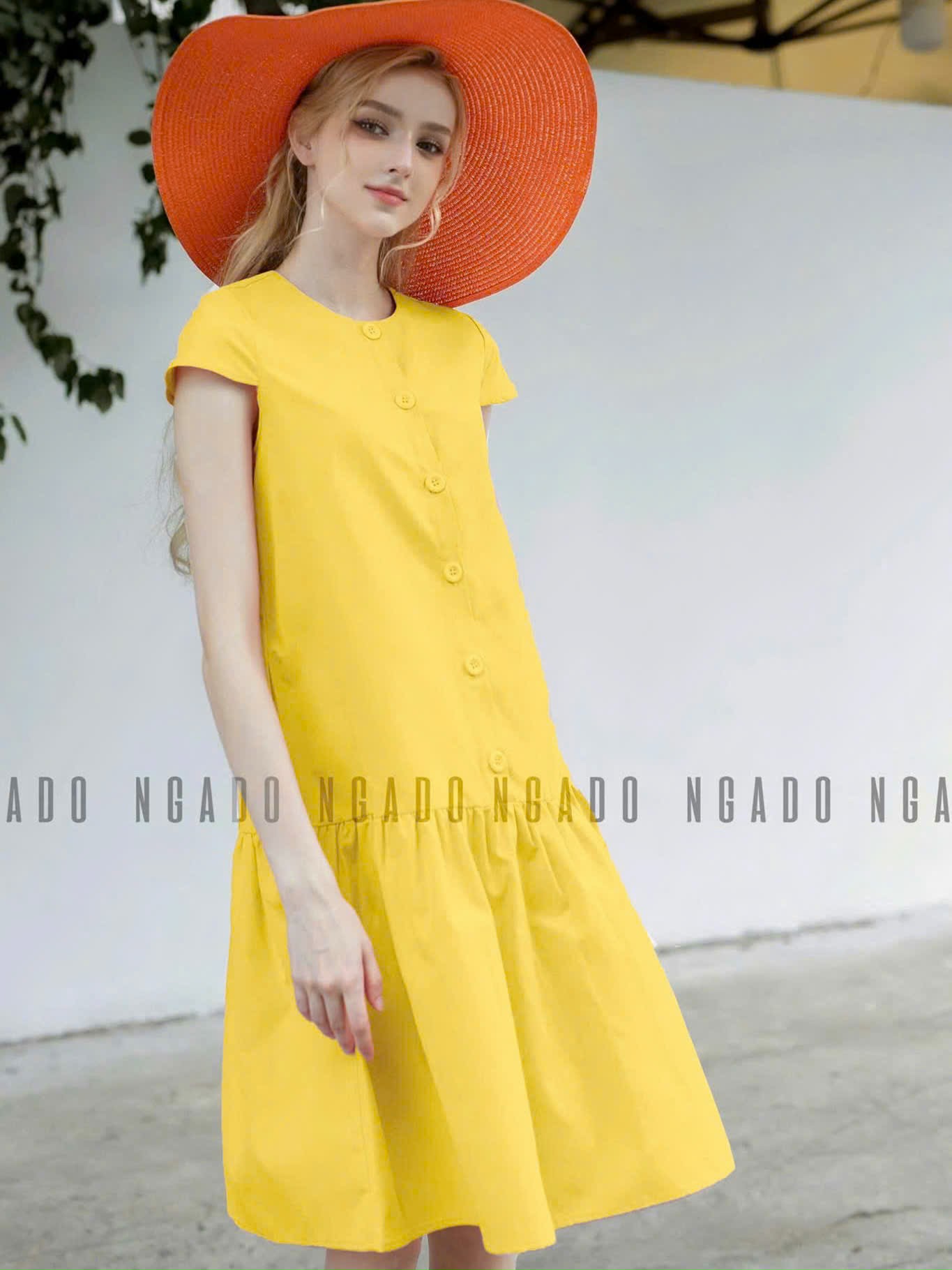 ✨Đầm babydoll vàng tay con NGADO , đầm suông , đầm kiểu Nữ