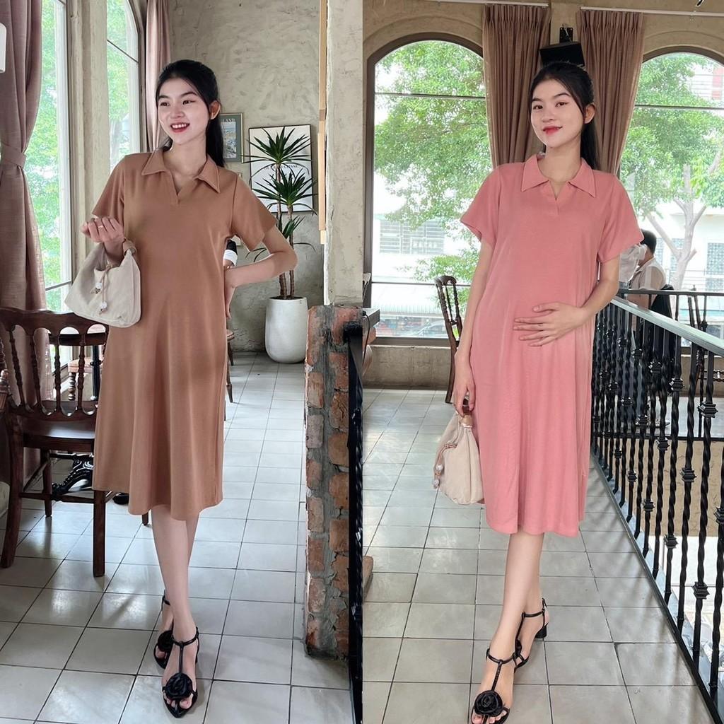 ÔNG TIN SẢN PHẨM: Đầm bầu Polo thun tăm dáng dài trẻ trung, năng động đi làm, đi chơi siêu dễ thương Chất thun tăm lạnh co giãn thoải mái, Mom mặc được cả khi