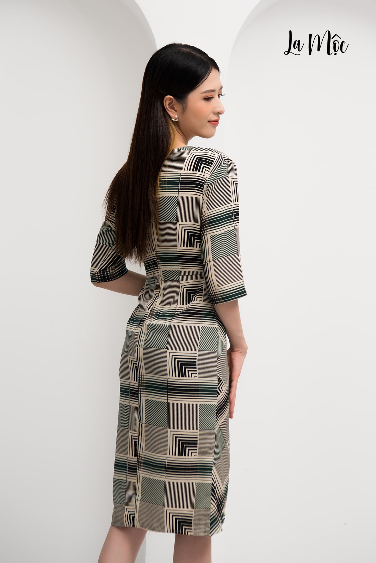 Đầm họa tiết sọc vuông La Mộc chất liệu lụa Korea là mẫu thiết kế dành riêng cho những cô nàng ưa thích sự sành điệu. Thiết kế chú trọng từng đường may. Phong cách