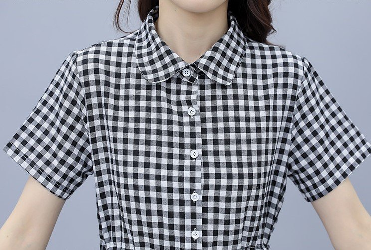 Váy sơ mi kẻ caro phối thêu nơ dễ thương, mang đến vẻ ngoài năng động nhưng vẫn nữ tính.   Thiết kế: Dáng suông thoải mái, cổ sơ mi thanh lịch. Điểm nhấn: Họa
