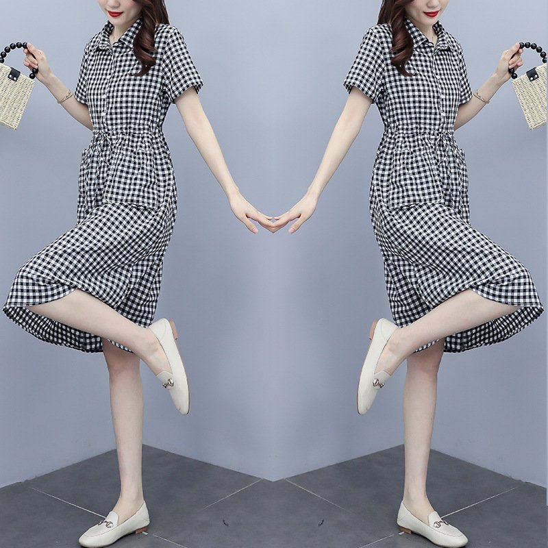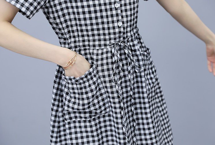 ✨Đầm đũi nữ ngắn tay, họa tiết kẻ caro trẻ trung, 2 túi bên thời trang, đầm có dây rút eo tôn dáng NH174