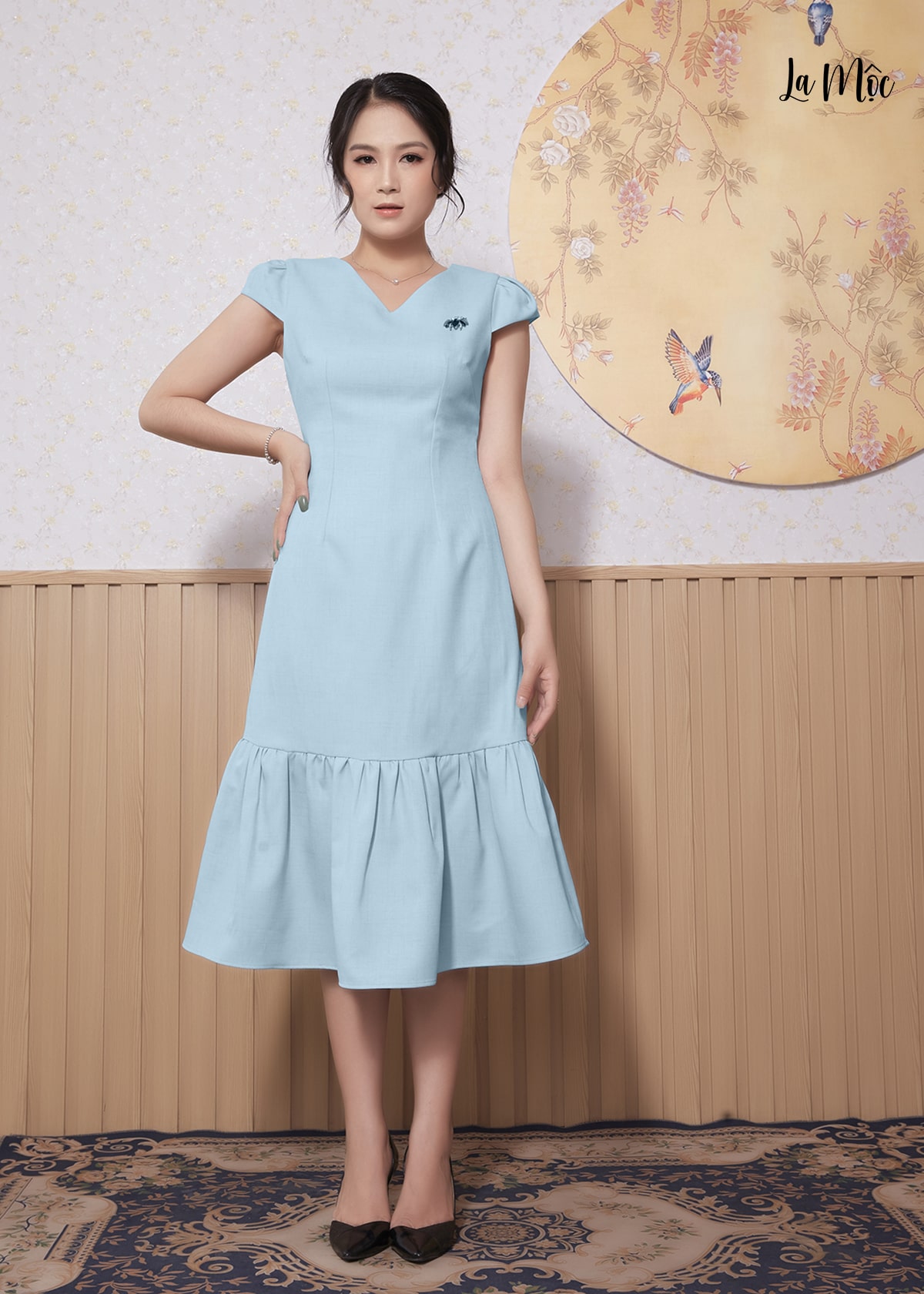Đầm nữ cổ tim, đuôi cá, tay ngắn, chất liệu lụa hàn quốc, màu xanh nhạt 1. Thông chi tiết sản phẩm Mã sản phẩm: LM012226 Chất liệu: lụa hàn quốc Size: S, M, L