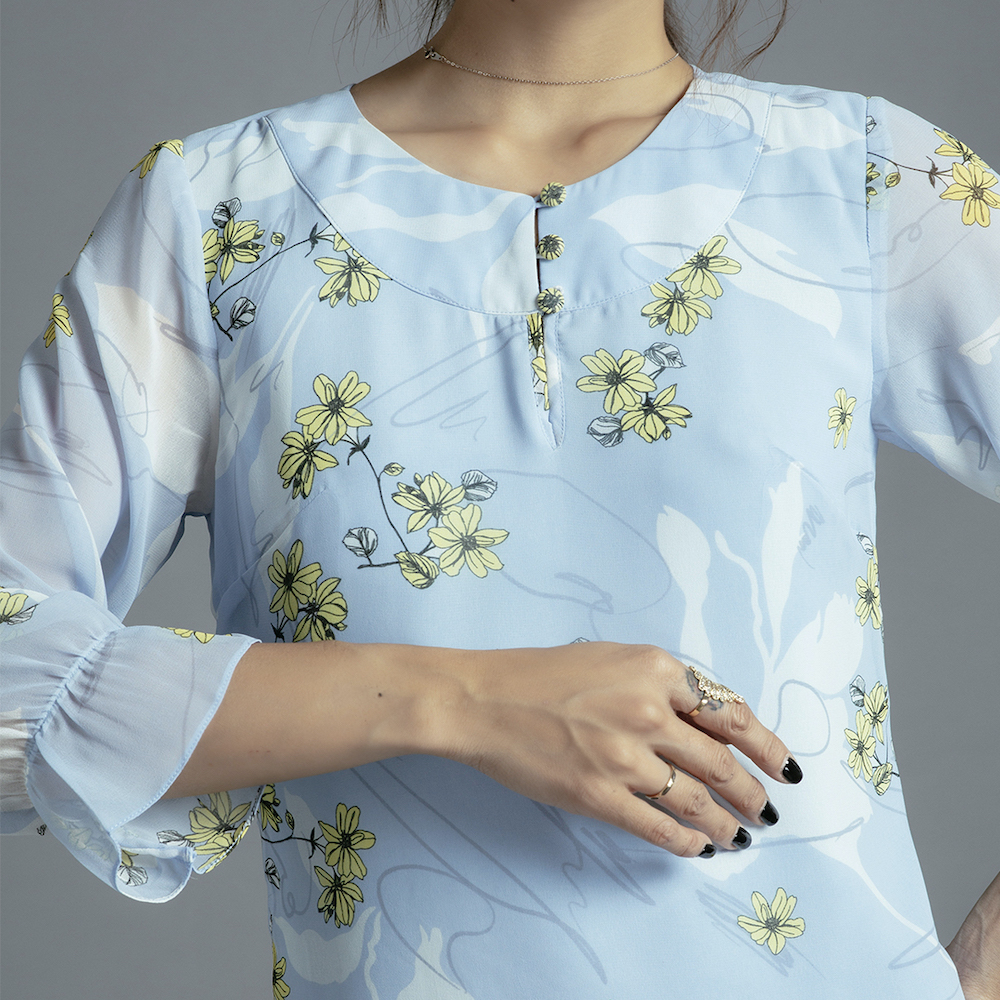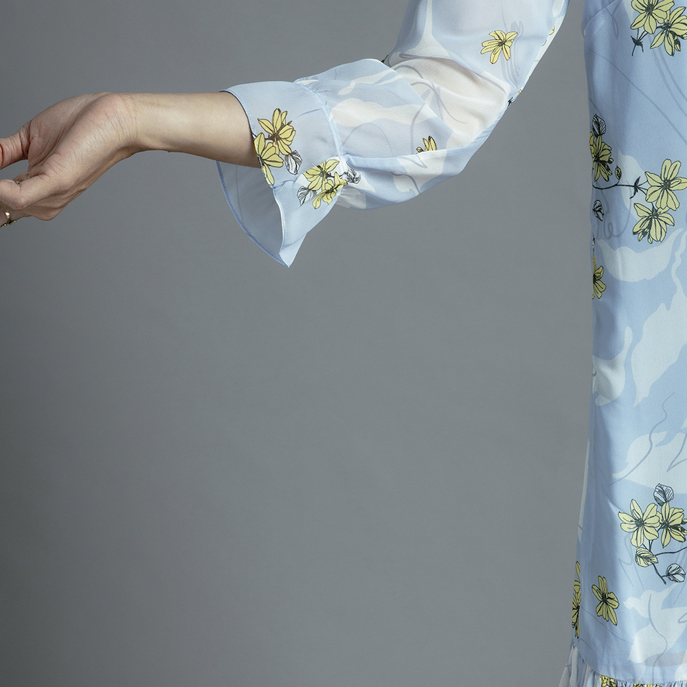 - lớp ngoài chiffon in hoa Hàn Quốc