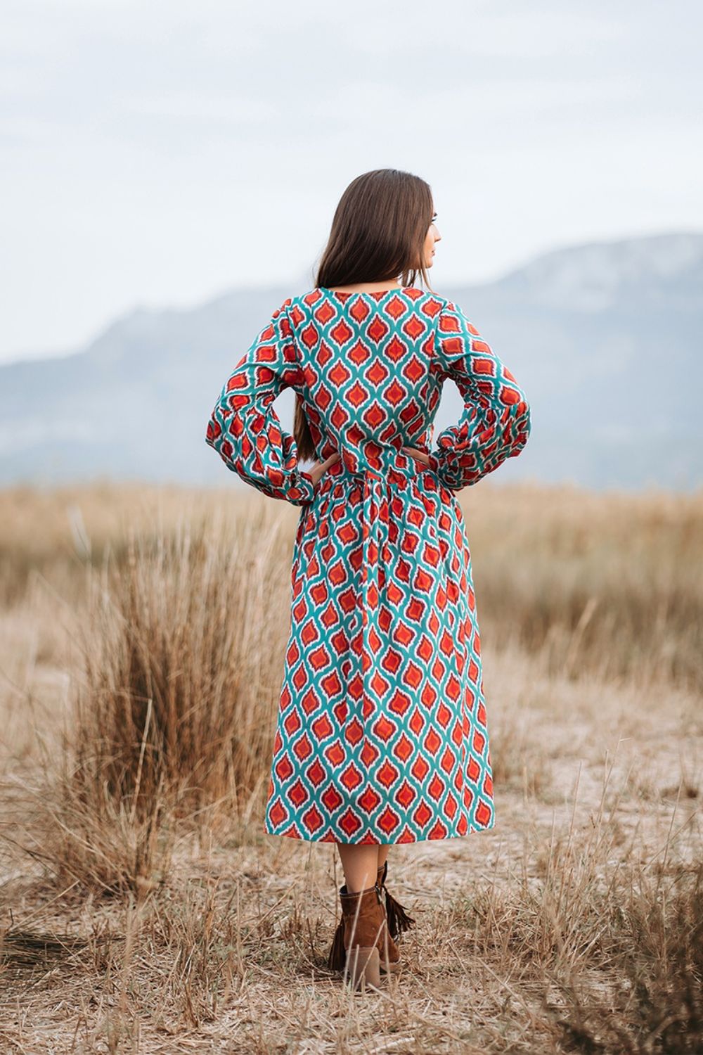 Maxi Boho Cotton Isla Bonita, chất liệu cotton cao cấp, mềm mại. Họa tiết thổ cẩm ấn tượng. Phom xòe rộng. Dài đầm 130cm (45x130) Phù hợp đi biển, dạo phố, công sở, hoặc dự