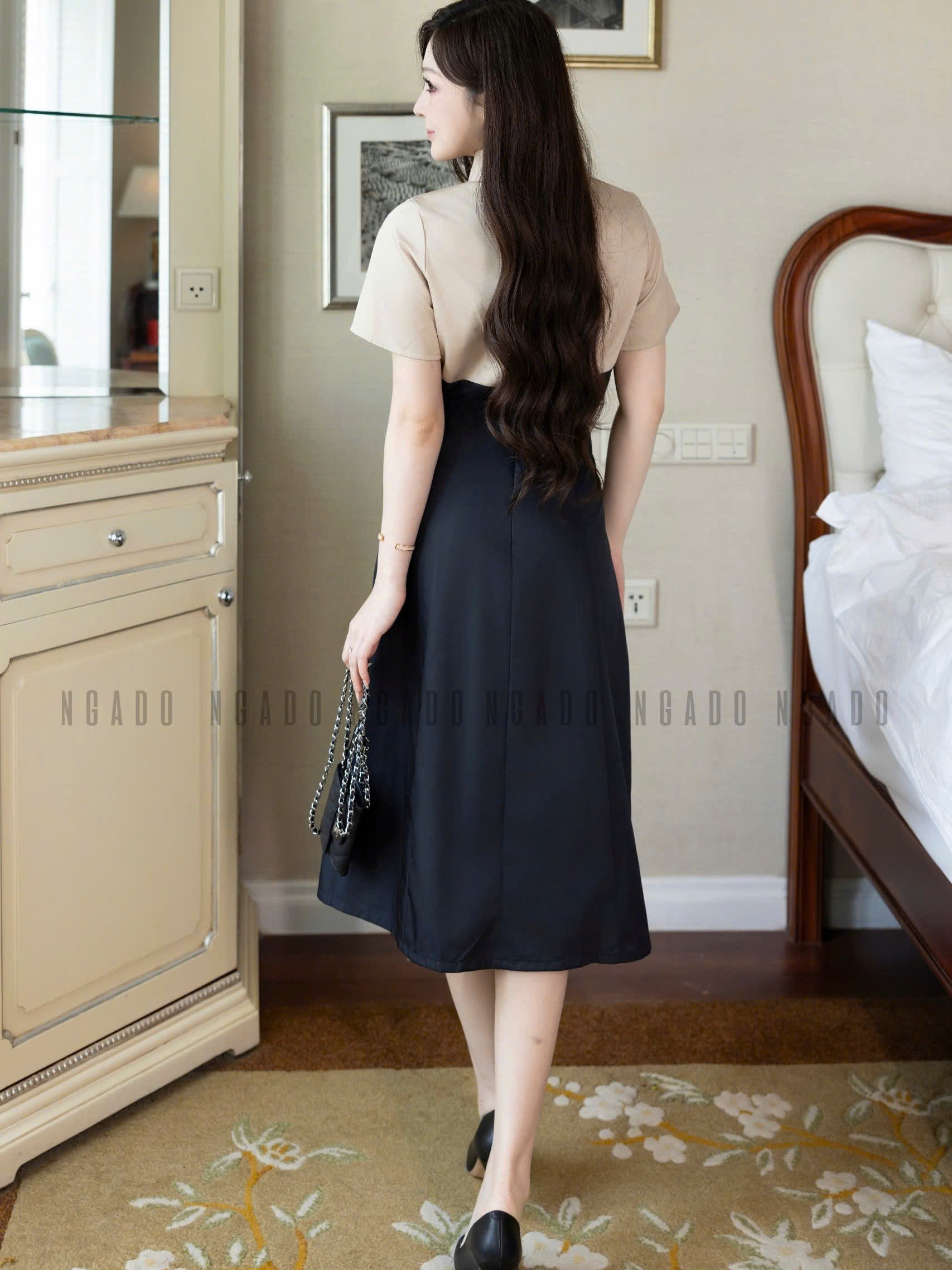Đầm eo cao giả set áo sơ vin với chân váy, kiểu tôn eo, chất liệu xuất sắc Mã: DZEA001 Màu: Hồng + Đen Chất liệu: Polyester Số đo vòng1/vòng2(cm): 89-giãn nhẹ/72-giãn nhẹ