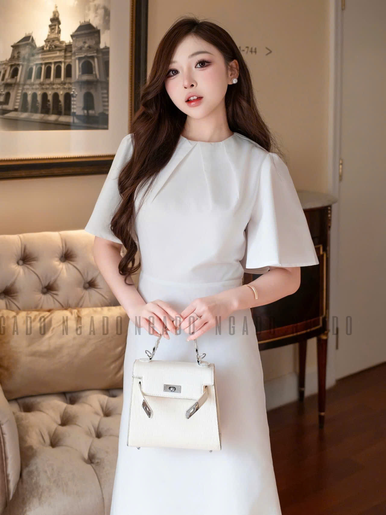 ✨Đầm trắng cổ xếp NGADO