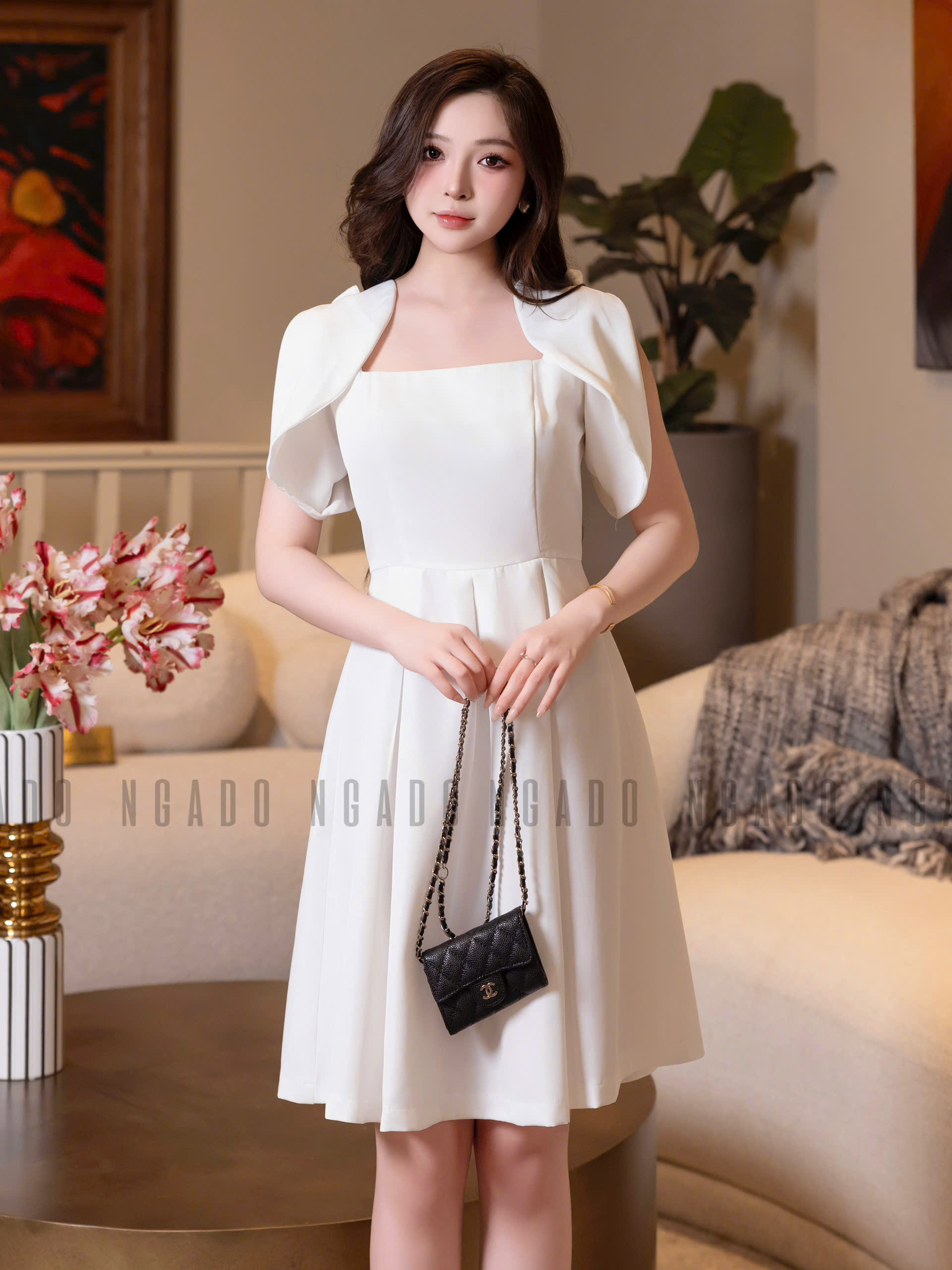 ✨Đầm trắng xếp ly NGADO , đầm dự tiệc , đầm công sở