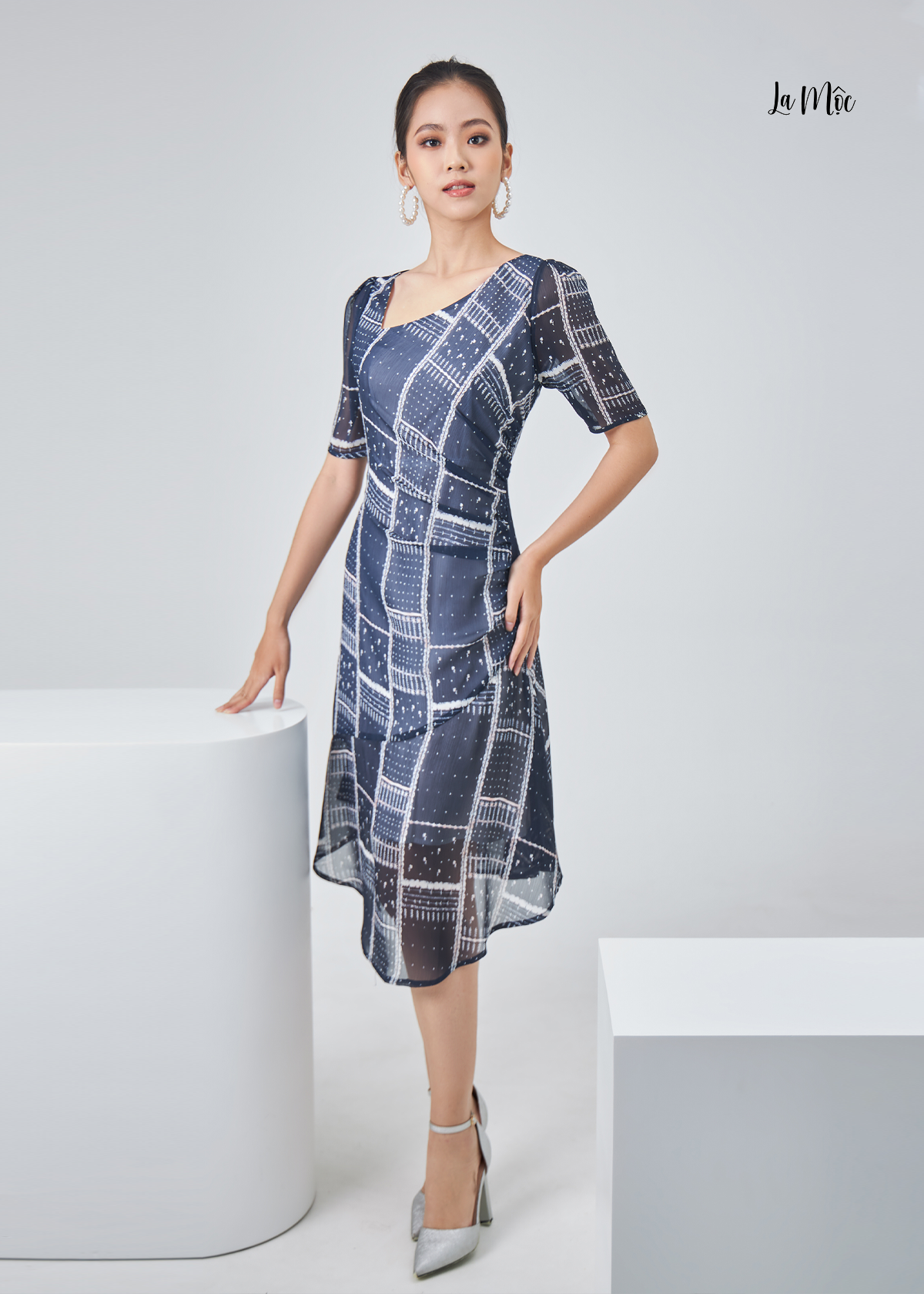 Đầm họa tiết sọc vuông La Mộc chất liệu lụa Korea là mẫu thiết kế dành riêng cho những cô nàng ưa thích sự sành điệu. Thiết kế chú trọng từng đường may. Phong cách