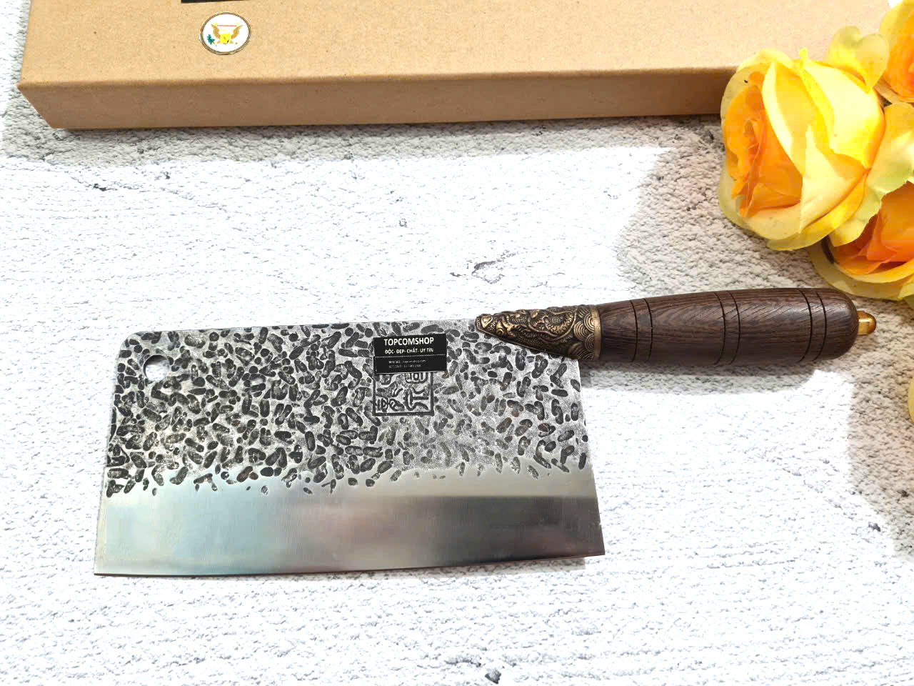Chất liệu tay cầm: gỗ CÁNH GÀ, khâu và chuôi cuối dao bằng đồng thau