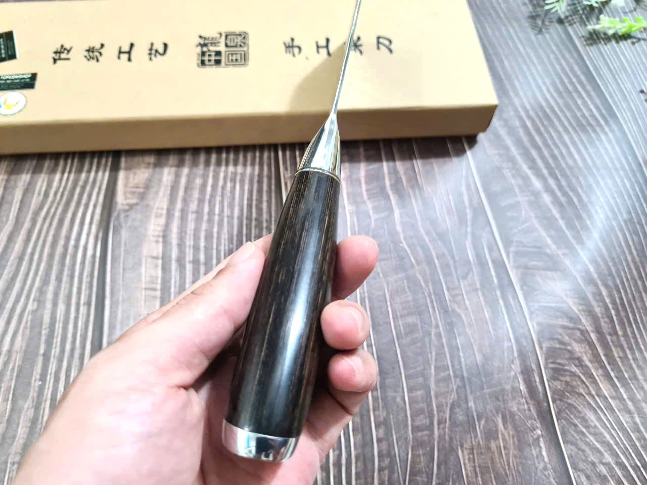 - Cán được làm bằng gỗ Pakka có vẻ ngoài thanh lịch, Lưỡi Được làm từ chất liệu thép 7Cr17 cao cấp giúp D có độ sắc rất lâu, rất ýt khi phải mài.