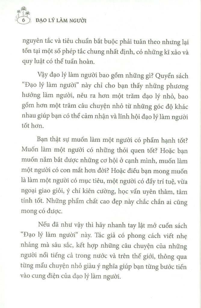 Đạo Lý Làm Người (Tái Bản) Đạo lý trong cuộc đời con người cũng giống như chiếc la bàn khi chúng ta đang đi thuyền trên biển. Nếu không có sự chỉ dẫn của nó, con người sẽ mãi chỉ tìm kiếm trong hỗn loạn và mù quáng, không thể tìm được phương hướng chính xác. Nếu hiểu được đạo lý làm người thì trên hành trình của cuộc đời này, bạn sẽ được nhiều hơn và mất ít hơn.