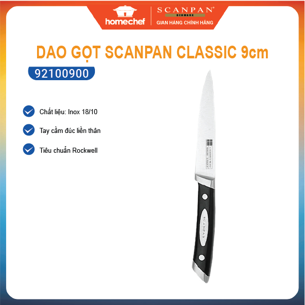 Dao thép Scanpan Classic 9cm (Bạc) – CLS1009/92100900Đặc điểm nổi bật:Chất liệu thép không gỉ hàm lượng carbon cao, độ bền vượt trội, không bị ăn mòn hay đổi màu.Thiết kế nhỏ gọn, tiện dụng, ph...