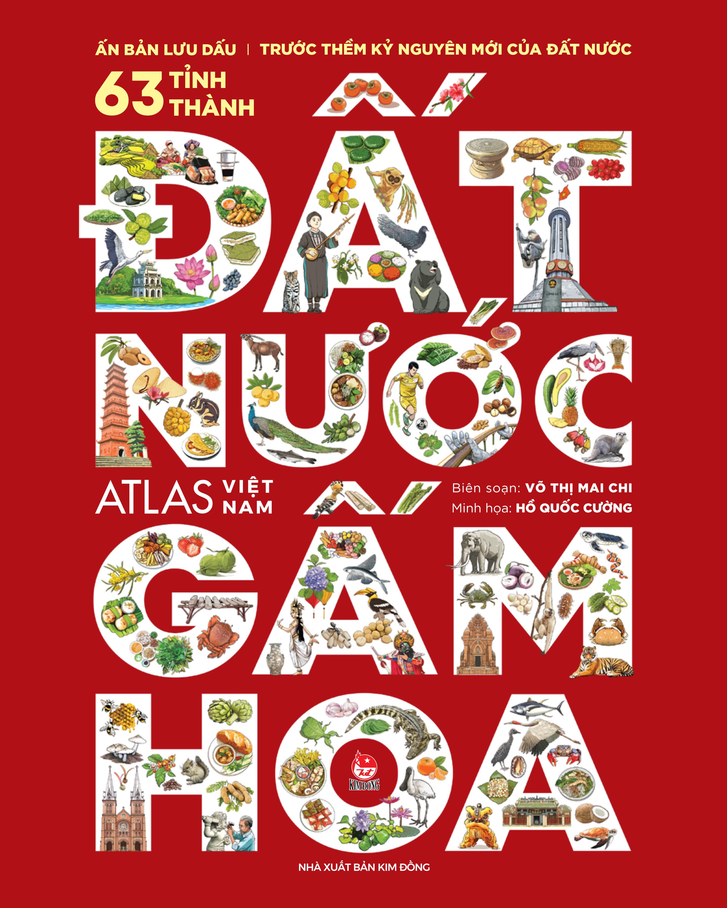 Sách - Đất Nước Gấm Hoa - Atlas Việt Nam - Ấn Bản Lưu Dấu 63 Tỉnh Thành - Kim Đồng Ấn bản lưu dấu lịch sử – Hành trình khám phá 63 tỉnh