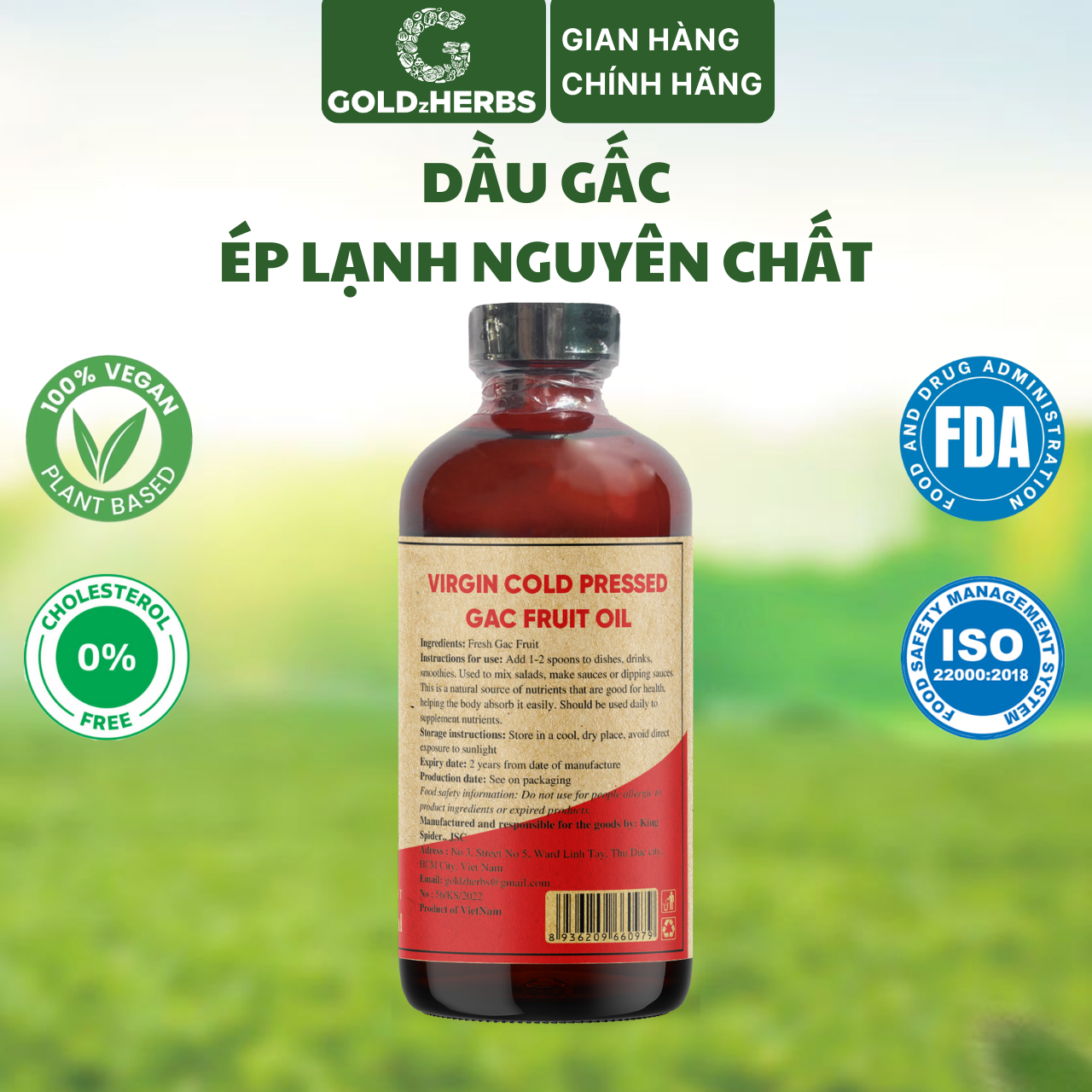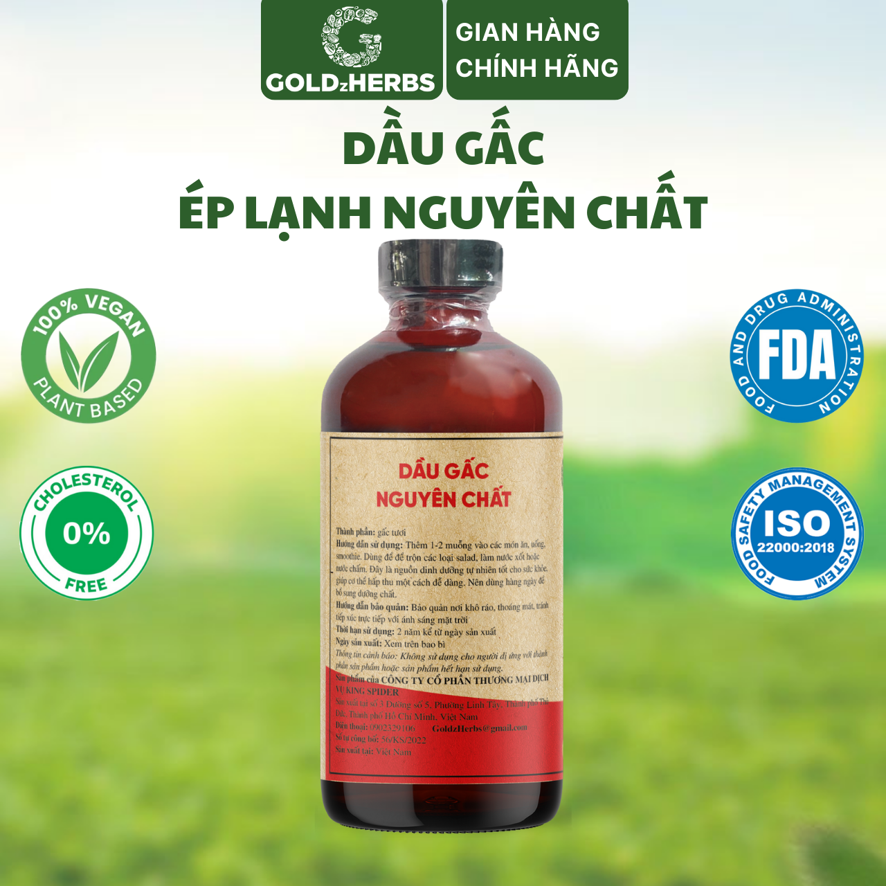 ✨Dầu gấc ép lạnh nguyên chất GoldzHerbs – Chai 120ml/ 250ml